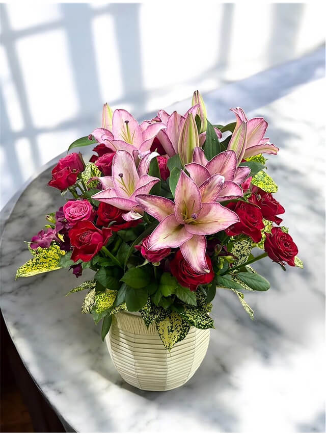 実 MINORI ユリ9輪とバラ20本 ¥15,000(税込)