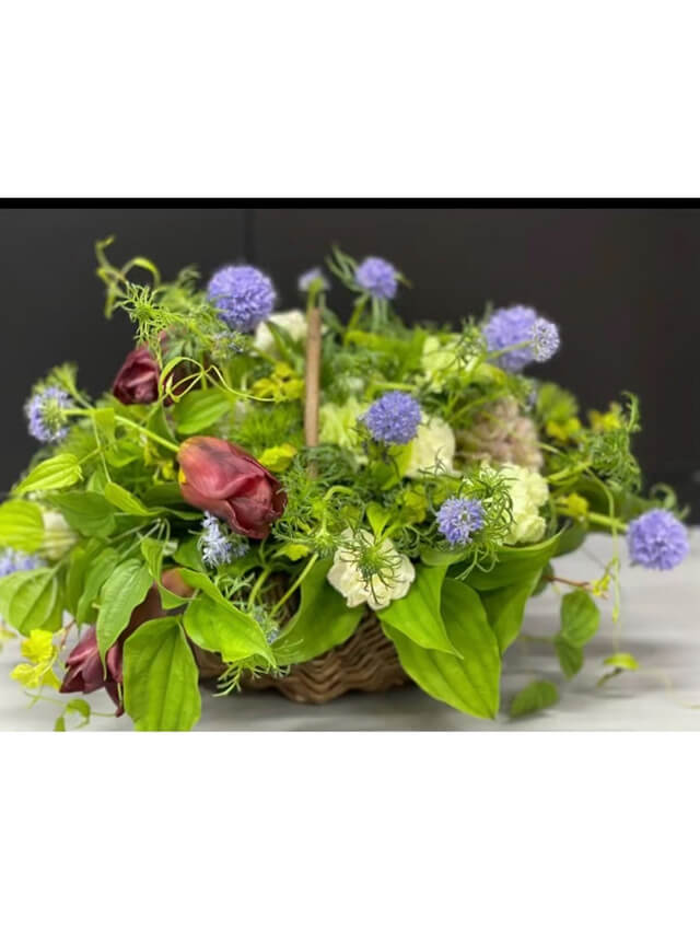 苺 ICHIGO 季節のお花でカゴアレンジ ¥15,000(税込)