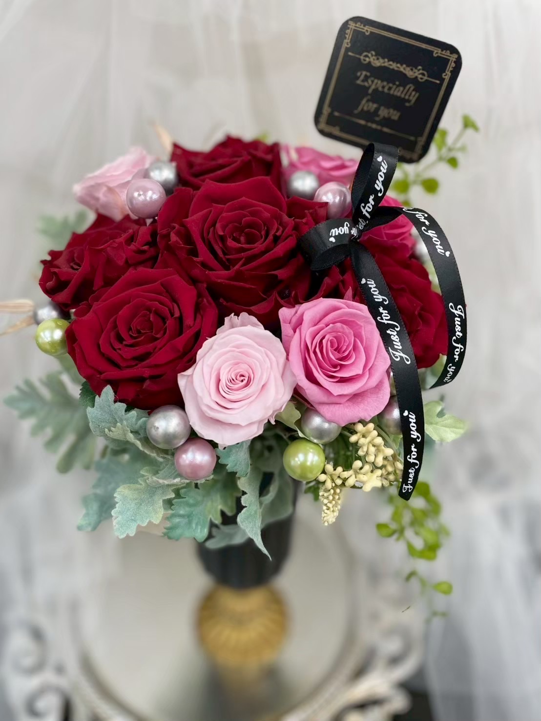 豪華で上品なデザインは、お部屋に飾るだけで空間を華やかに彩り、見るたびに贈られた嬉しい気持ちや大切な思い出を感じていただける特別なフラワーギフトです。水やりやお手入れの必要がないため、お忙しいお母様にも安心して贈っていただけます。