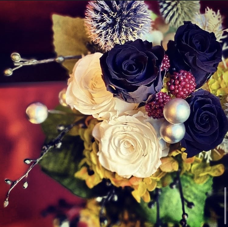 中でも印象的なブラックカラーは、生花ではなかなか表現できない幻想的で深みのある色合い。シックで洗練された雰囲気を纏い、他にはない個性と存在感を放ちます。
