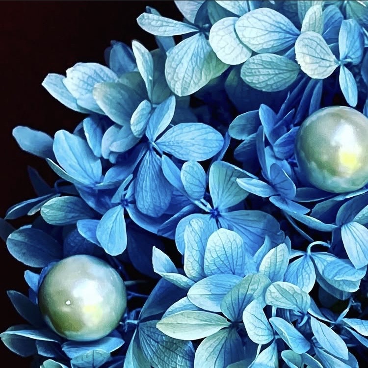 深く澄んだ藍色が心を惹きつける、紫陽花のプリザーブドフラワーアレンジメント。