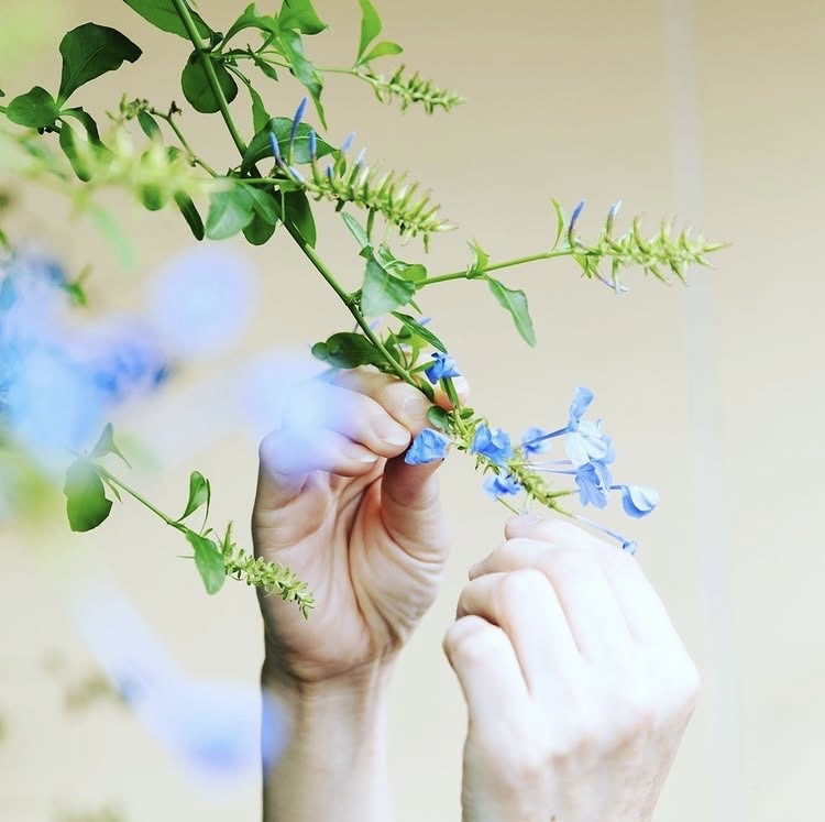 爽やかなブルーが心をほどく、ルリマツリのフラワーアレンジメント。