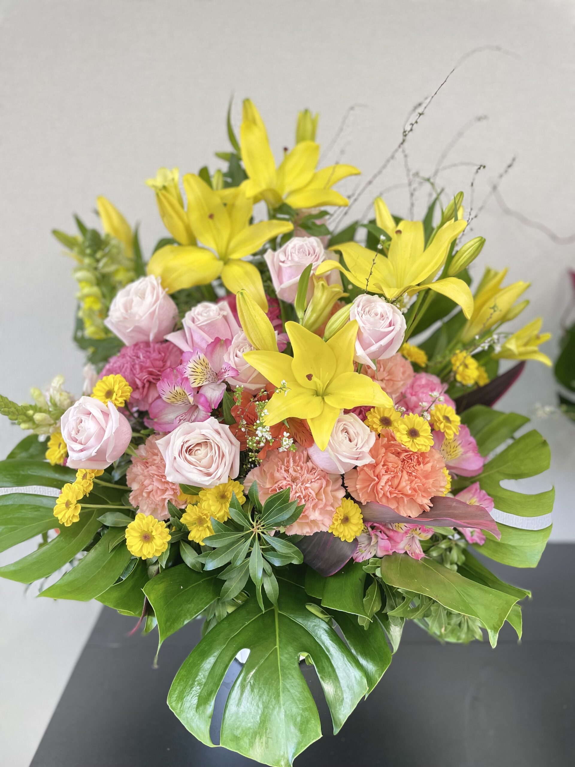 香りのないユリをメインに使用しているため、場所を選ばず安心して飾っていただけます。