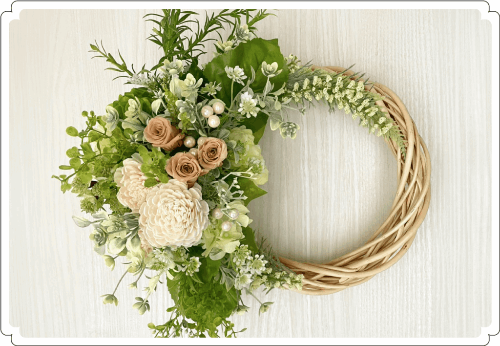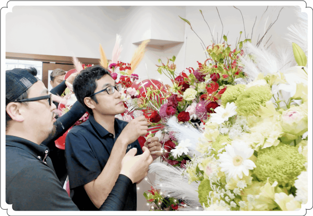 美術や空間演出に関する知見、ブライダル業界での豊富な経験、各種フラワー資格に裏付けられた技術を活かし、プリザーブドフラワー、アーティフィシャルフラワー(造花)、フレッシュフラワー(生花)など、多彩な素材とデザインで、空間を美しく彩る花々をご提案しています。